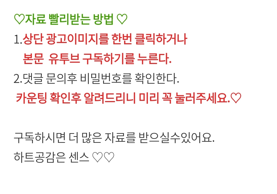 3. 필요한 자료가 있다면 댓글로 남겨주세요. 최대한 만들어 볼께요!!