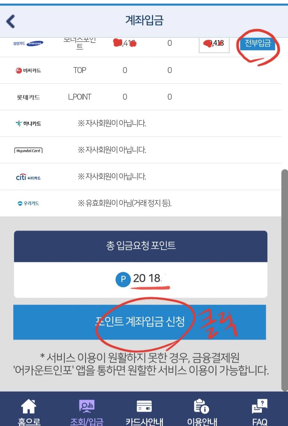신용카드 사용후 조금씩 쌓이는 카드 포인트를 모아서 내 계좌에 입금할수 있습니다.