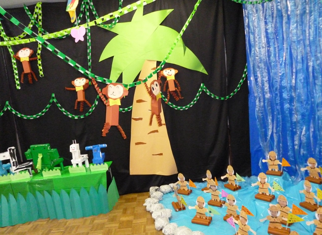 정글 동물원 프로젝트 교실 환경구성 사자, 호랑이, 오랑우탄, 하마, 악어등 실감나게 표현해보았네요.