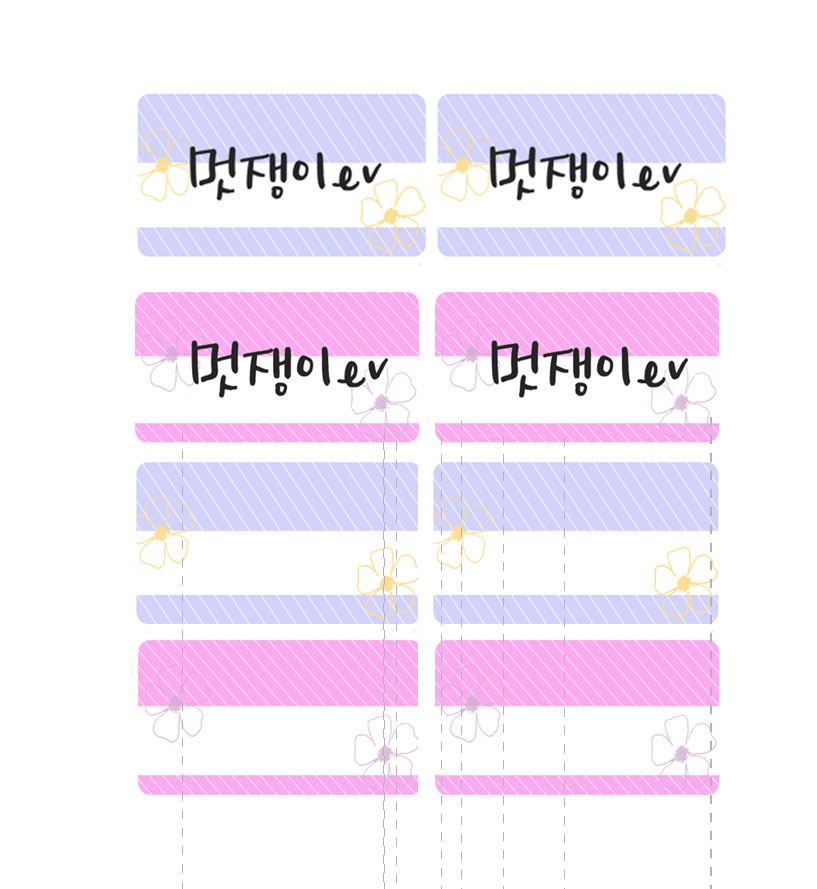 어린이집 유치원 책상 이름표나 옷걸이, 영어교재, 책, 필통, 개인 준비물, 아이들이 가지고 갈 미술작품이나 물품에 붙여 주면 좋을 간단한 이름표 준비해보았습니다. 봄이라서 달달한 꽃과 파스텔 핑크, 민트빛 이름라벨입니다.