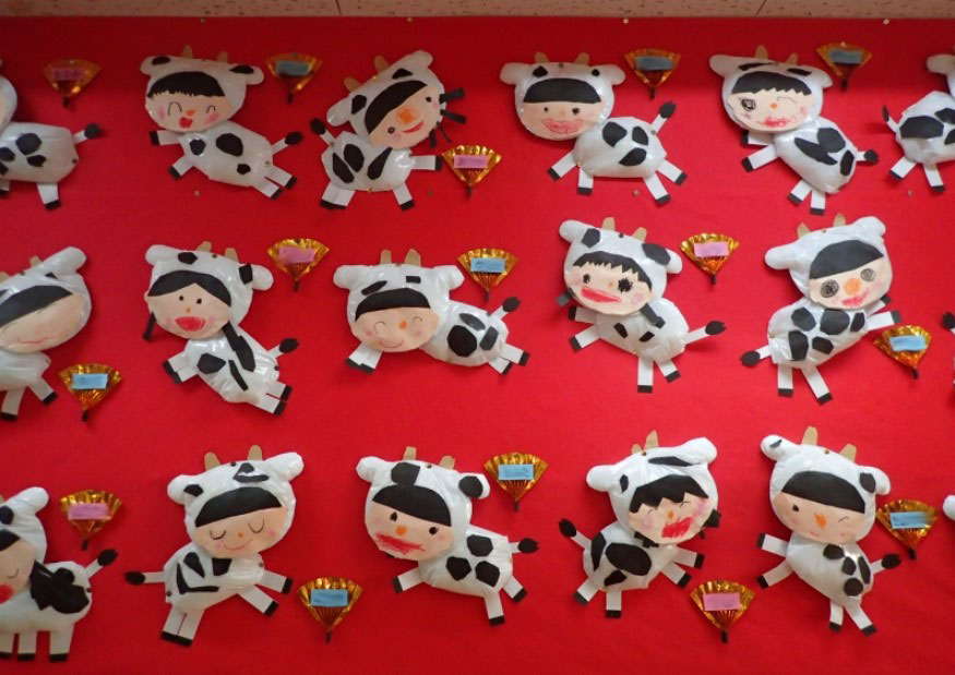 신선한 우유를 주는 젖소는 솜과 검정색 색지를 사용하여 만들어봅니다