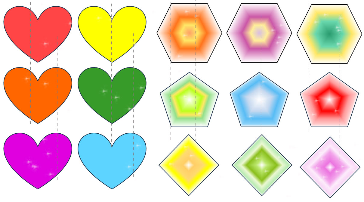 하트모양, 오각형, 육각형, 등등 모양에 대한 놀이 중심활동이 이루어진다면 제시해주셔도 좋구요.