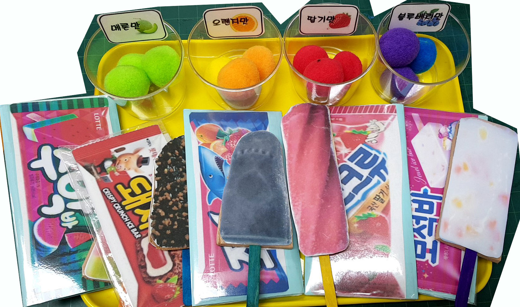 베스킨 라빈스, 나뜨루 등등 콘아이스크림도 좋지만 이번 자료는 일명 하드 라고 하는 막대 아이스크림을 만들어 아이스크림 봉지도 만들어 주어 꺼내 먹는 재미로 준비해 보았습니다.