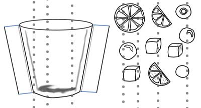 4. 레모네이드속에 들어갈 얼음과 과일들을 풀이나 글루건으로 붙여주세요,