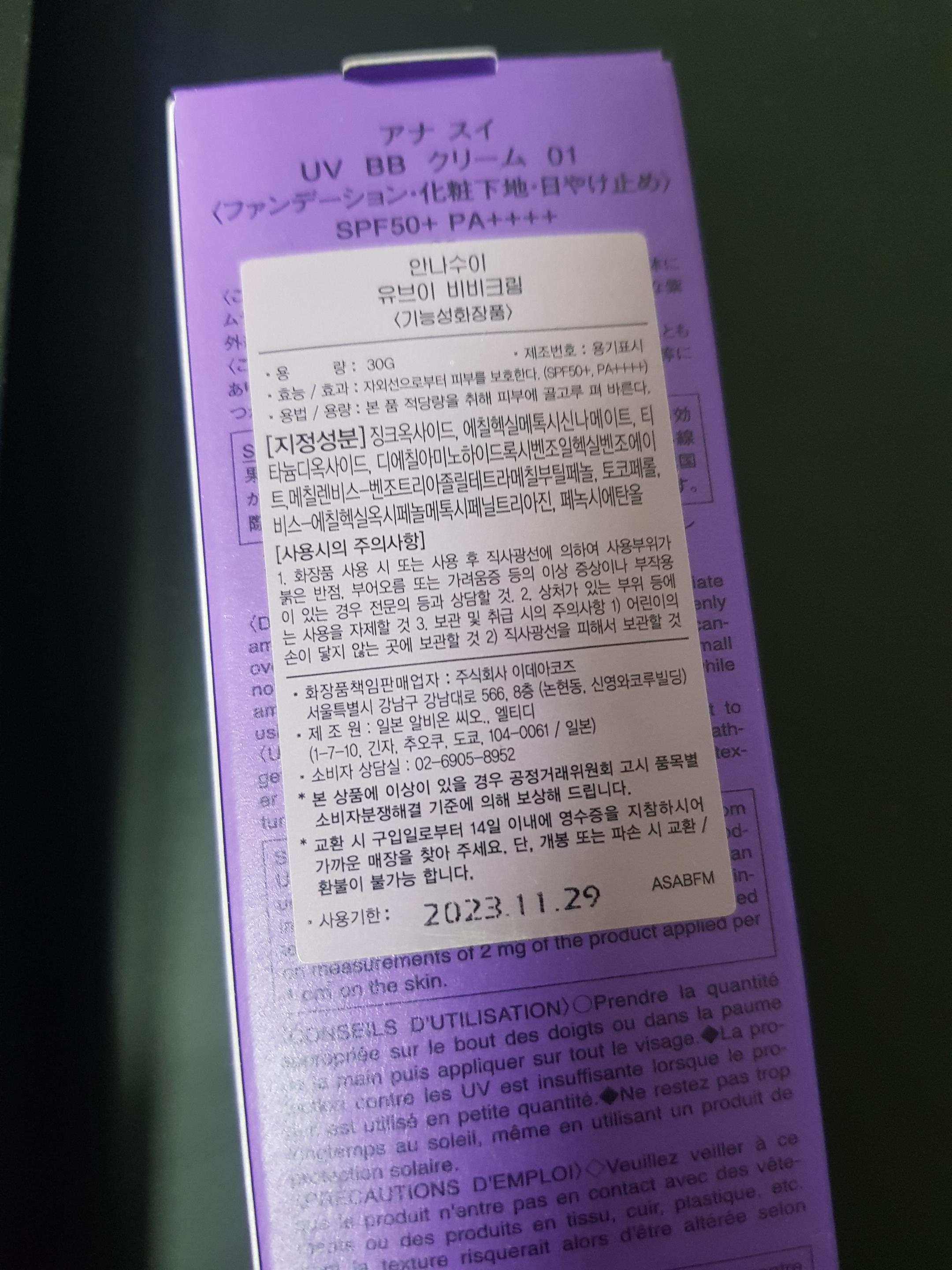 안나수이 유브이 비비크림 올인원 메이크업 빠른시간내 자연스러운 화장 연출할수 있어 간편하다.