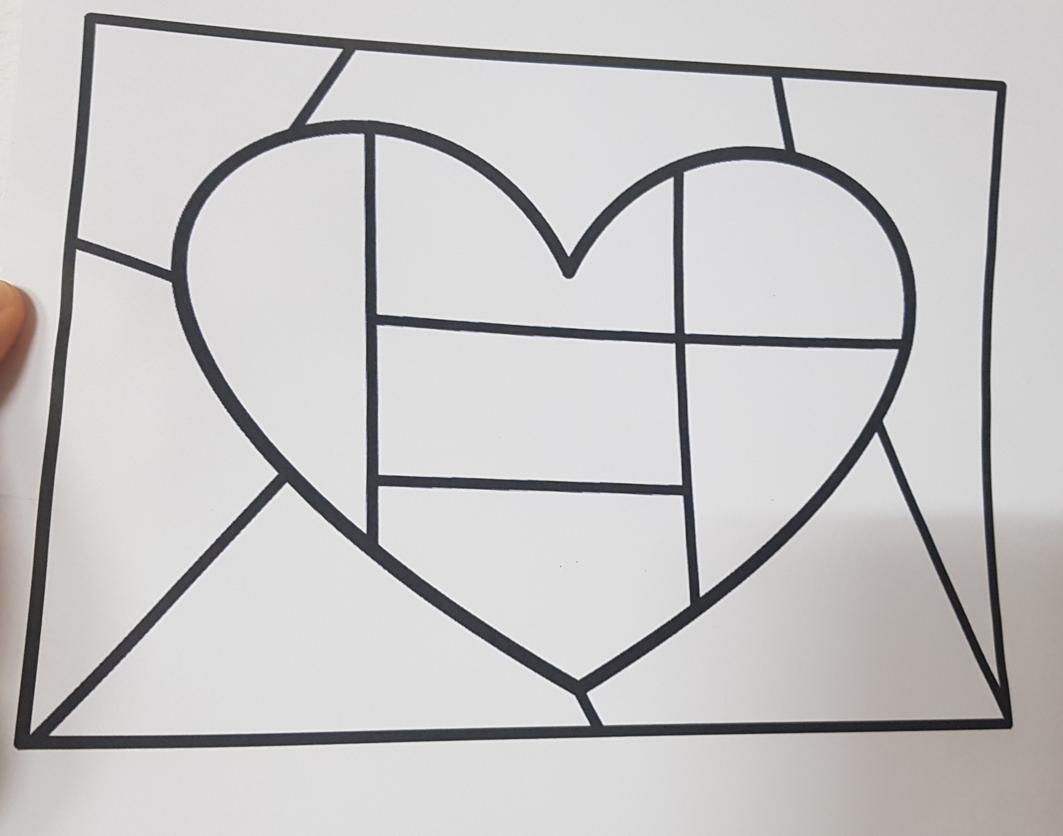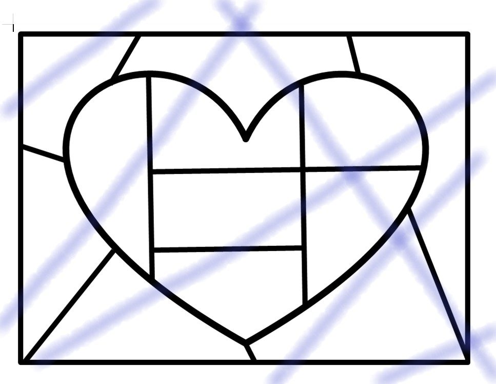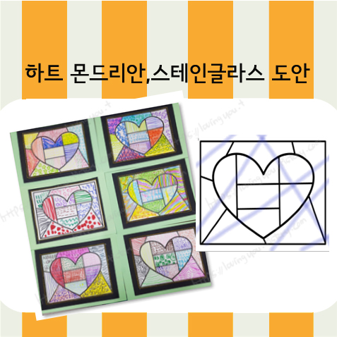 하트 몬드리안도안 , 하트 스테인드글라스 도안 선 그리기 미술활동 도안 공유
