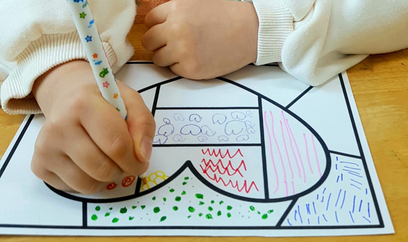 기본적인 소근육 발달을 돕기위한 미술활동으로 기초적인 선그리기 활동을 제일 먼저 시작합니다.