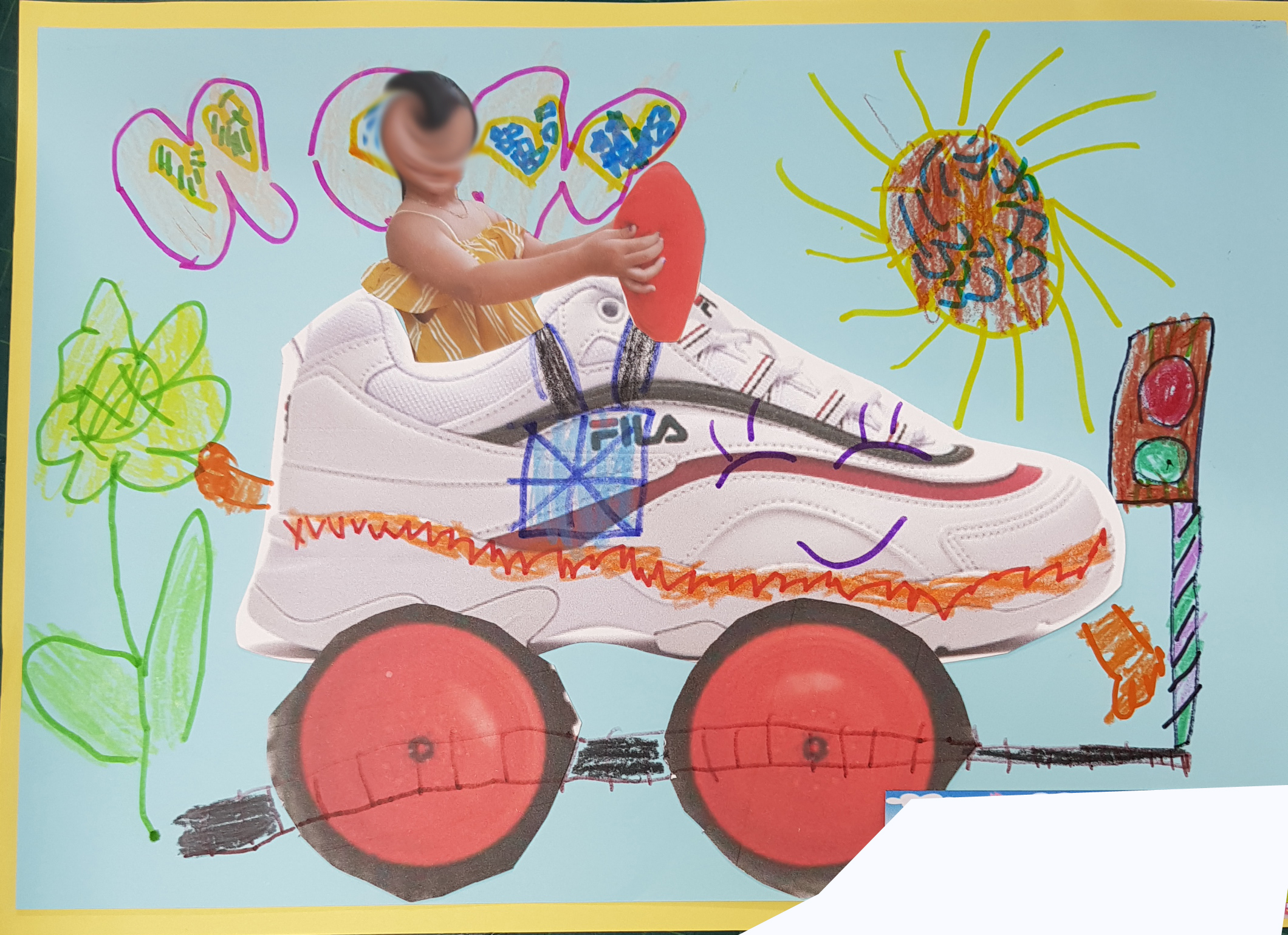 - 여러가지 사물과 바퀴그림들은 제시해주고 좋아하는 것을 유아들이 직접 선택하여 도화지나 색지에 풀로 붙여주세요.