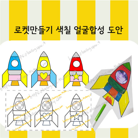 지구와 우주 환경구성이나 로켓 미술활동 용으로 로켓을 만들어 꾸밀경우 아이들의 얼굴을 합성해서