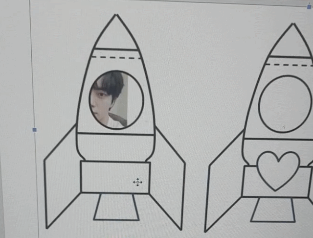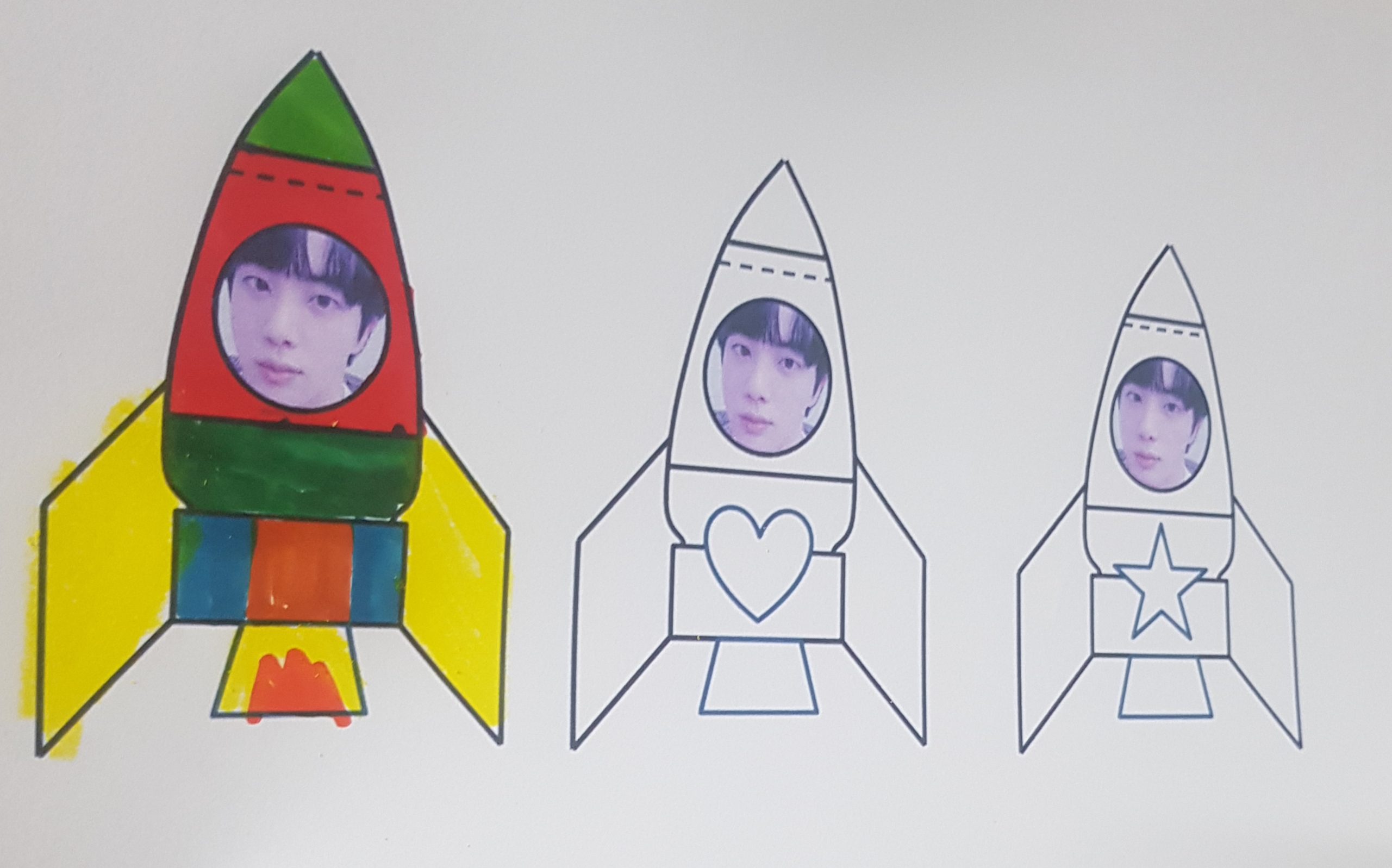 아이들 사진 위에 로켓 도안을 오려주고 바로 인쇄해서 사용하시면 됩니다!!