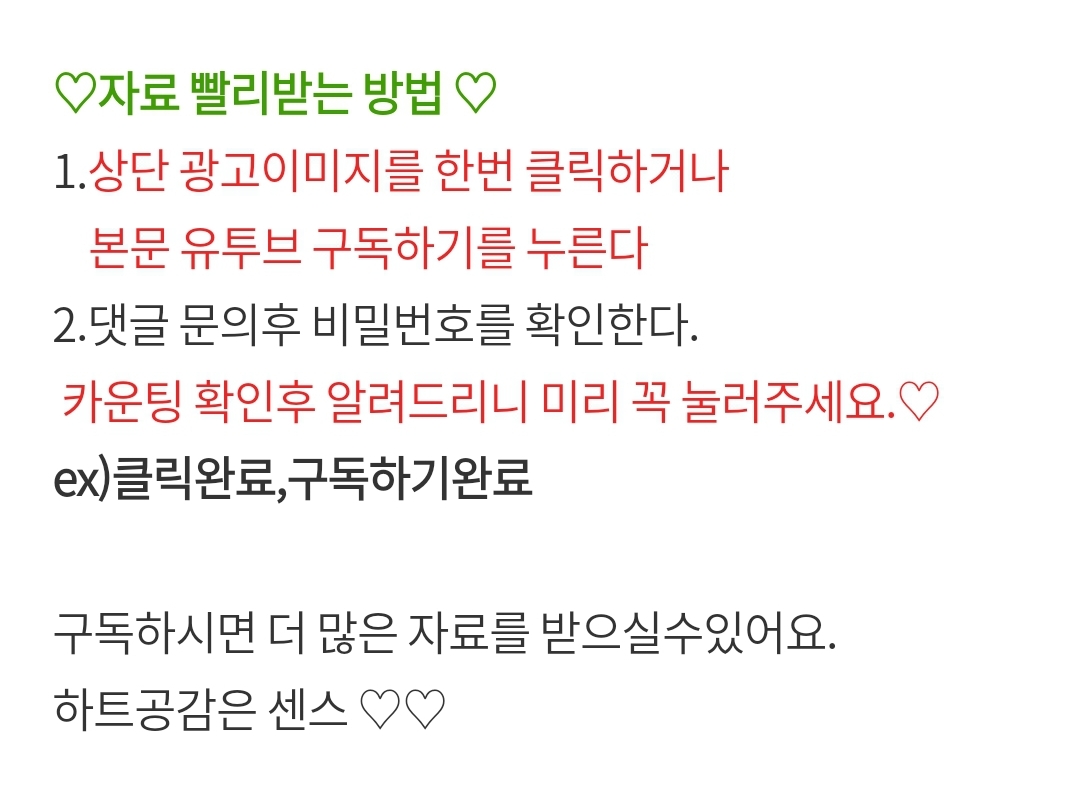 3. 필요한 자료가 있다면 댓글로 남겨주세요. 최대한 만들어 볼께요!!