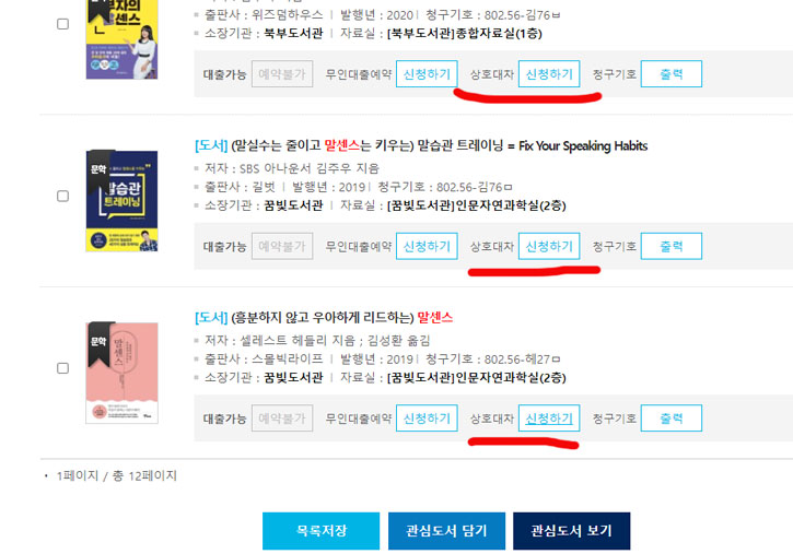 책을 검색하면 상호대차가 가능하면 위에처럼 파란색으로 뜨게됩니다.