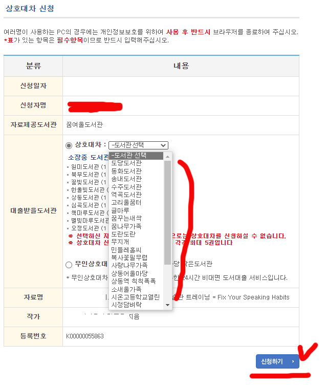 상호대차 서비스도 똑같습니다.