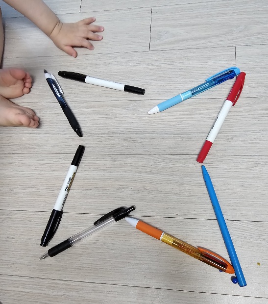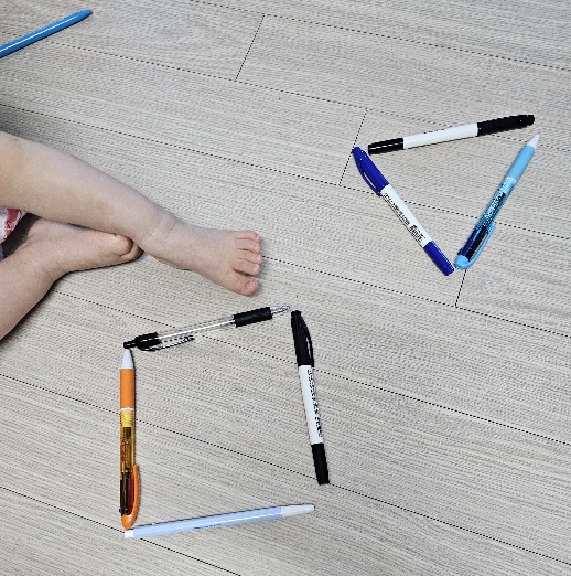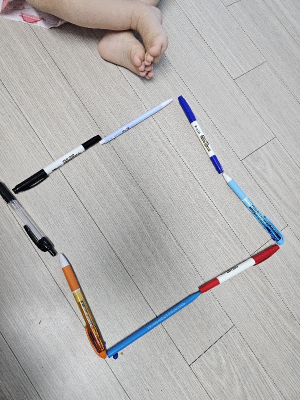 바닥에 나열해보며 여러 모양으로 만들어 보여줍니다,