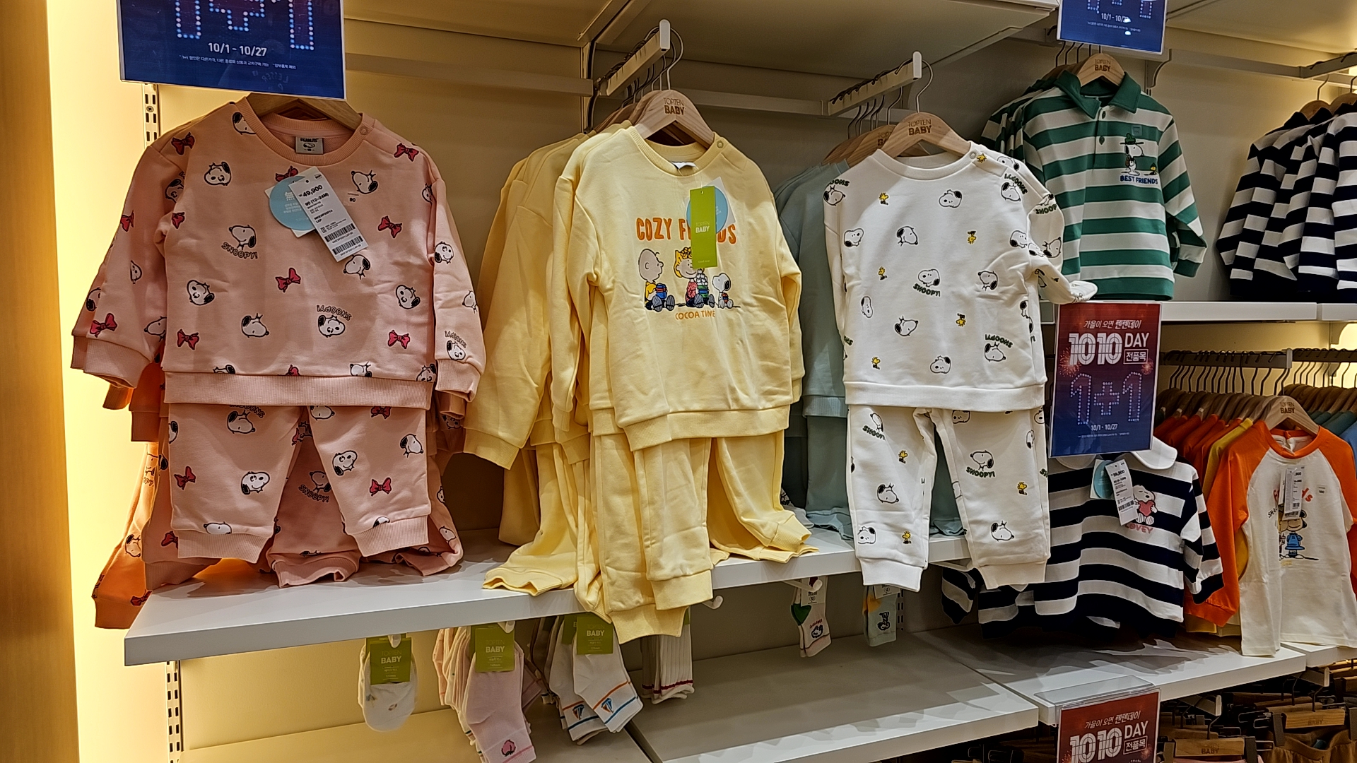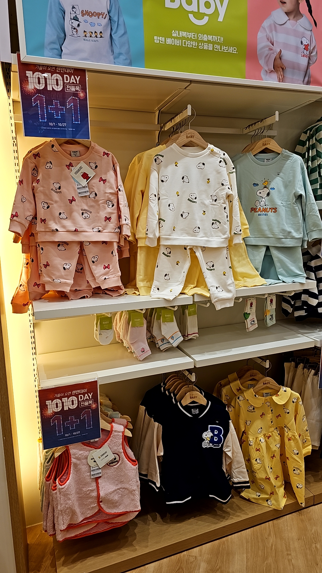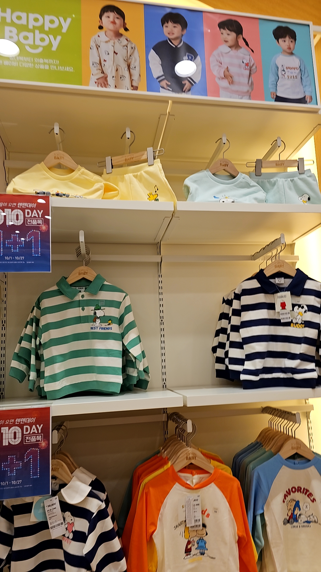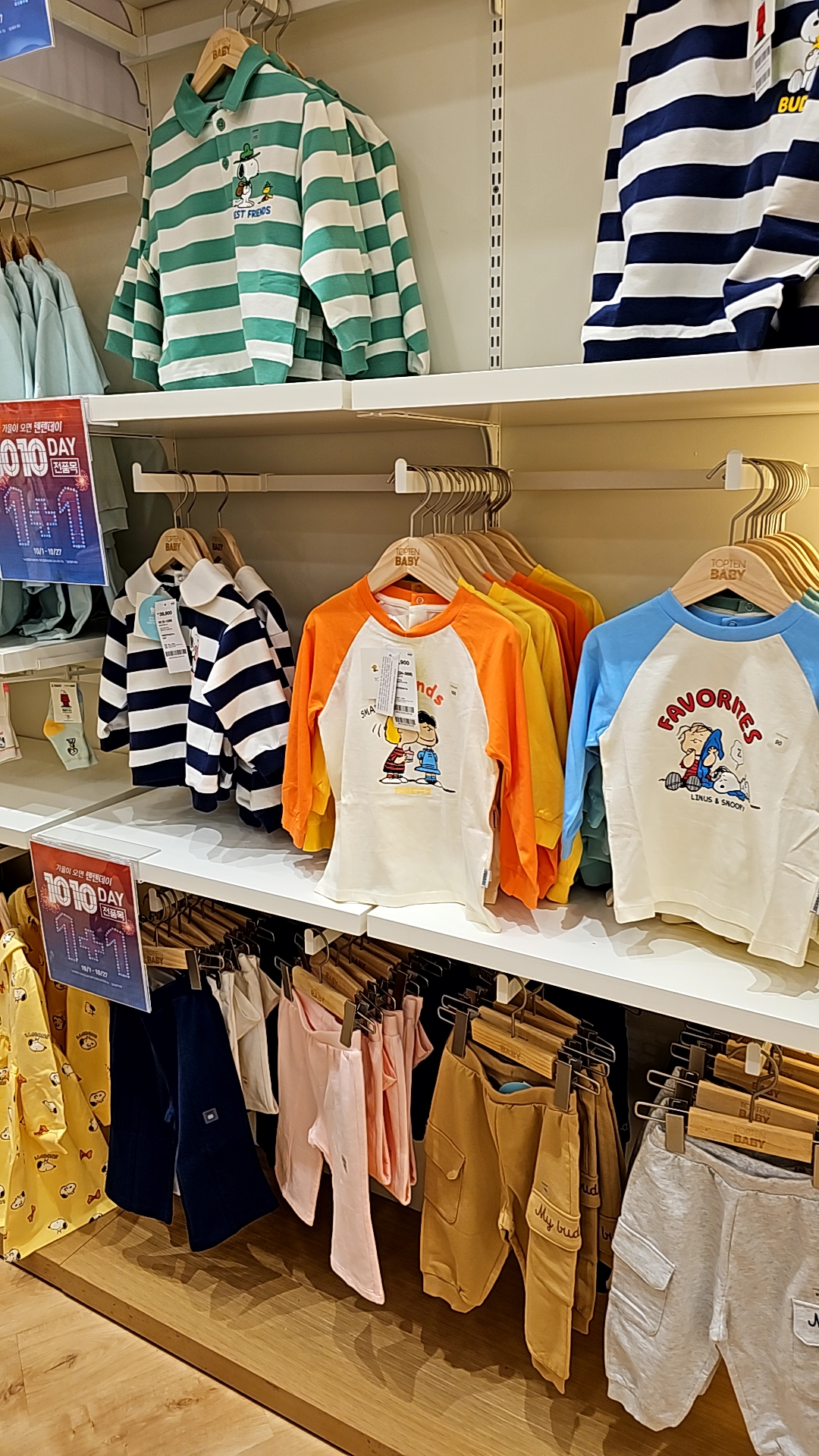 신생아에서 부터 내의 돌아기 옷까지 구경할수 있었는데 사고 싶었던 스누피 티셔츠들은 매장에서 이미 다 팔려서