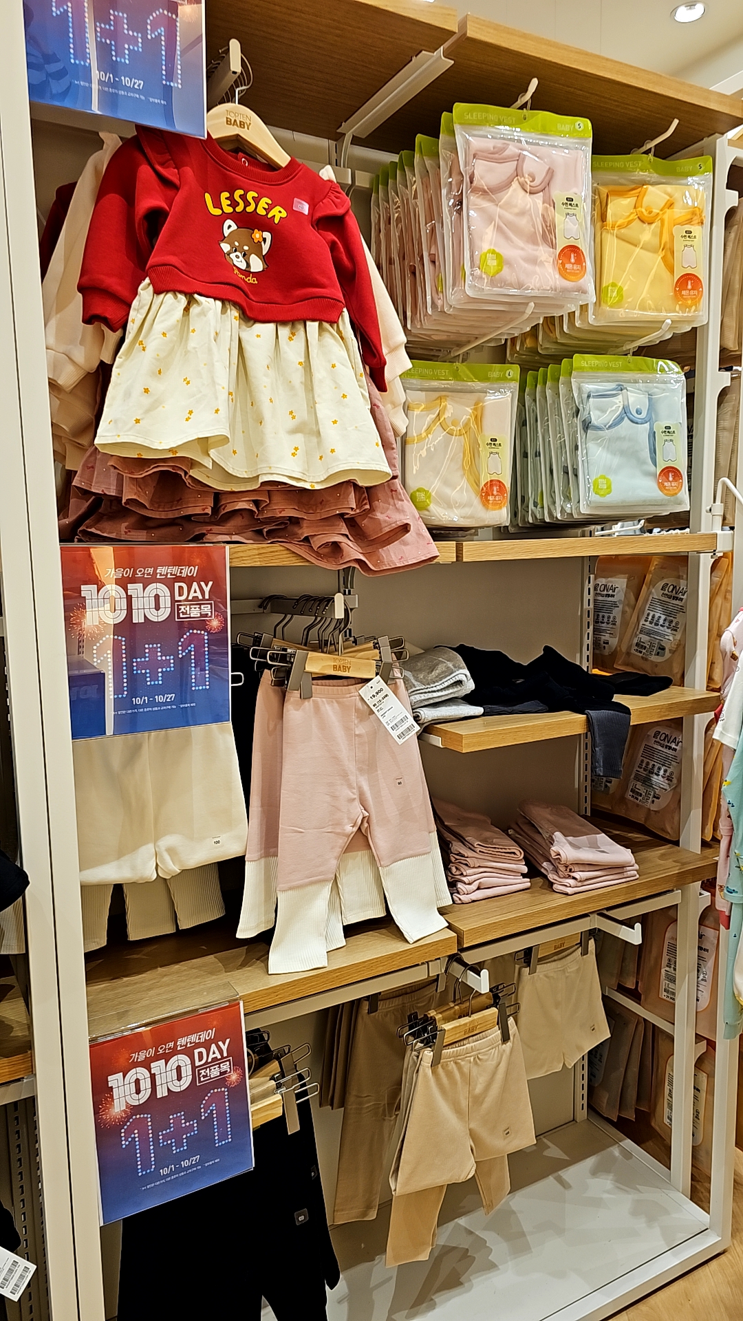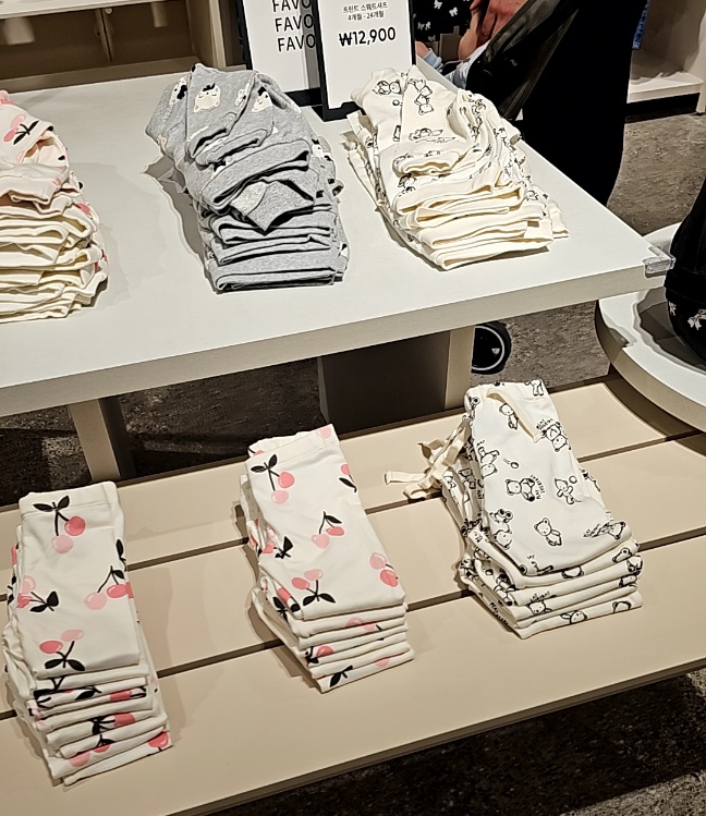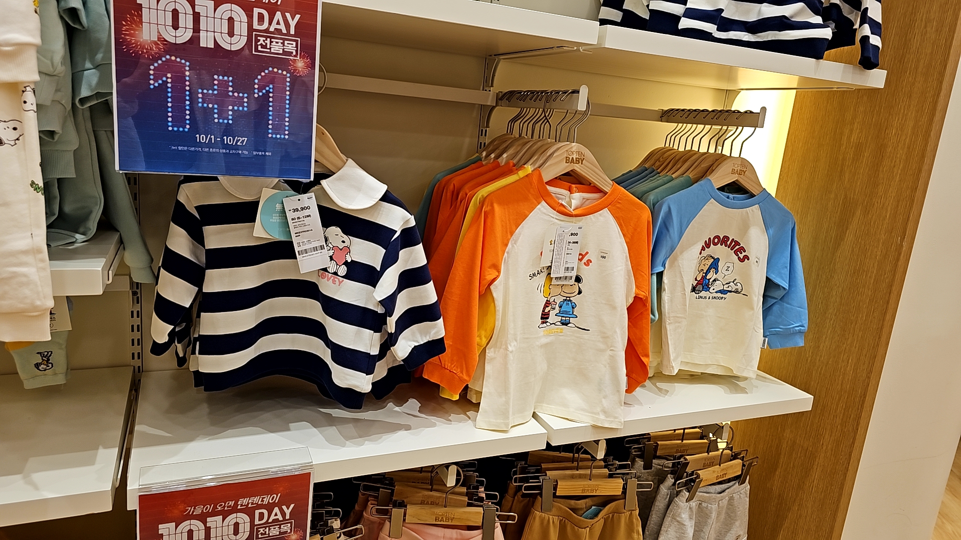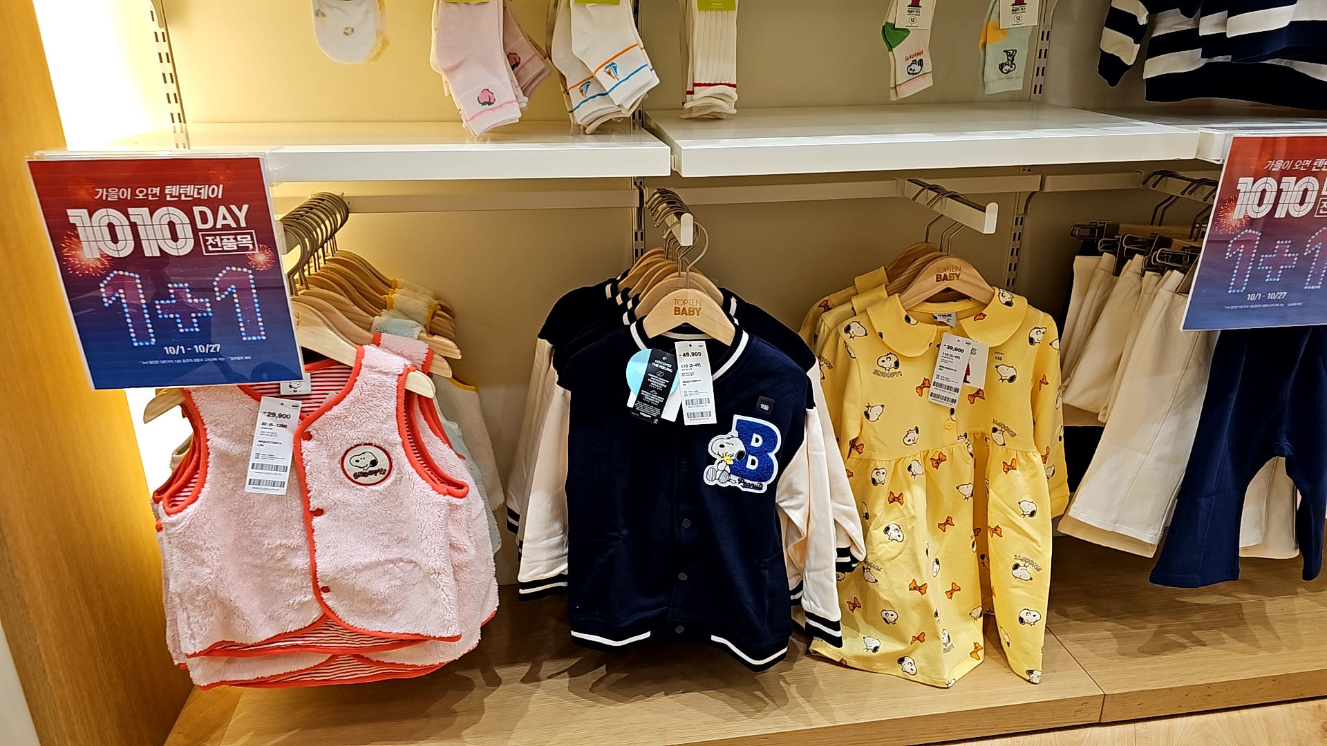 신생아에서 부터 내의 돌아기 옷까지 구경할수 있었는데 사고 싶었던 스누피 티셔츠들은 매장에서 이미 다 팔려서