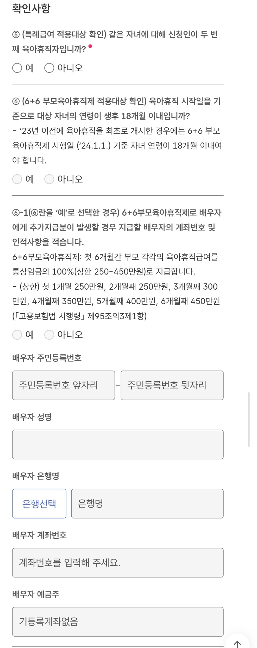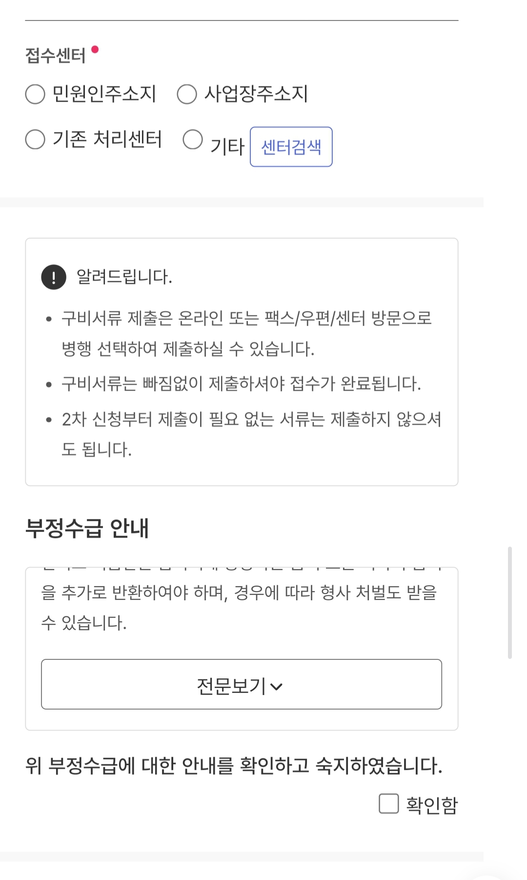 부정수급관련해서 확인함 체크 해주시고 , 회사에서 받은 육아휴직 확인서 1부 를 업로드 해줍니다.