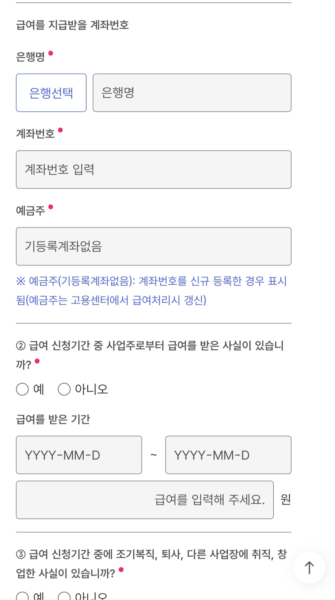 급여를 지급받을 은행 계좌번호를 입력해줍니다.