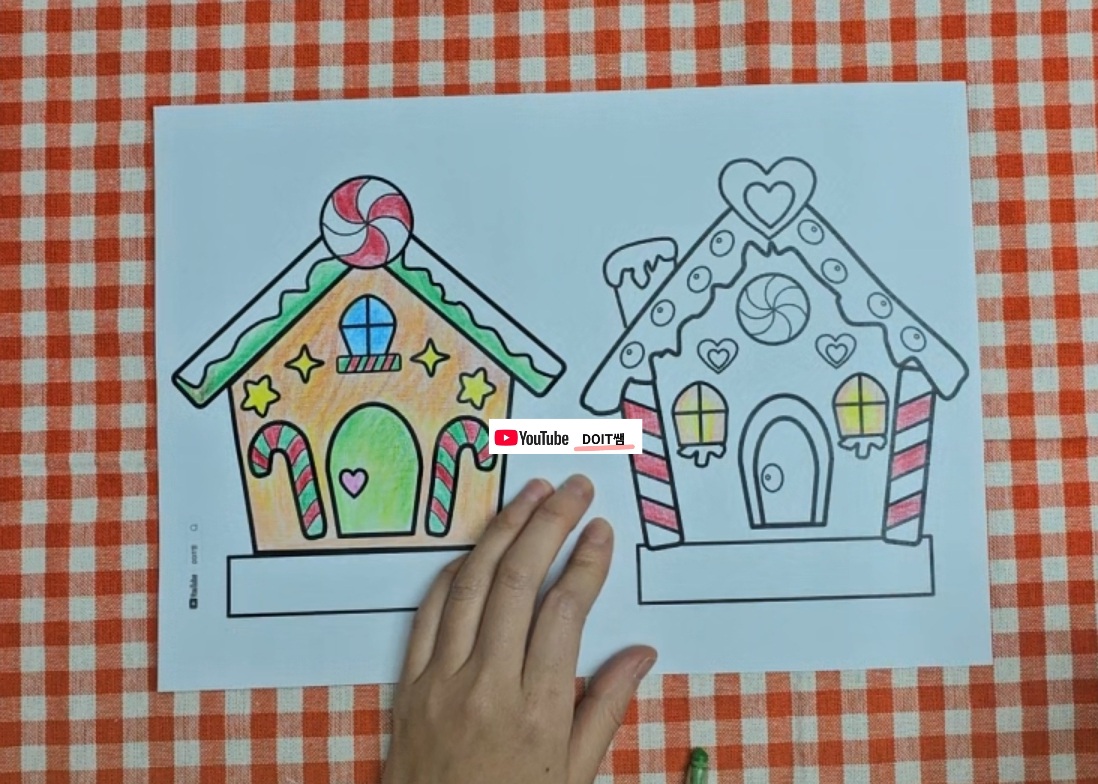1번 도안 크리스마스 쿠키집 입체 색칠하기