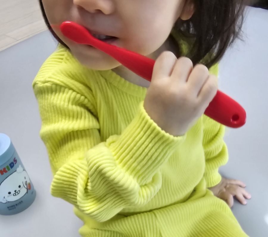 아이와 부모가 함께 양치할수 있는 치대로 설계하여 만들어져 손으로 잡기 편하다는 것을 느낄수 있더라구요!