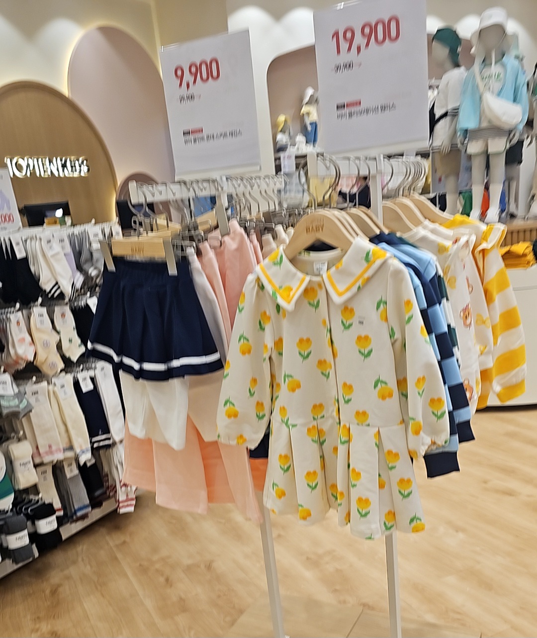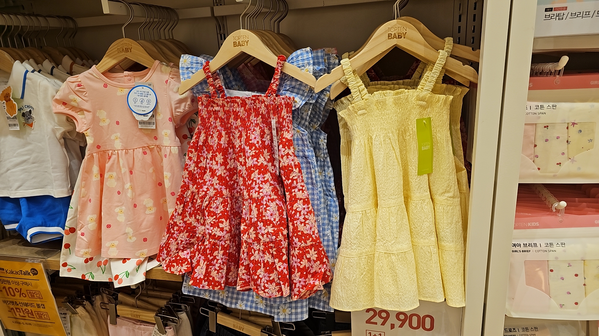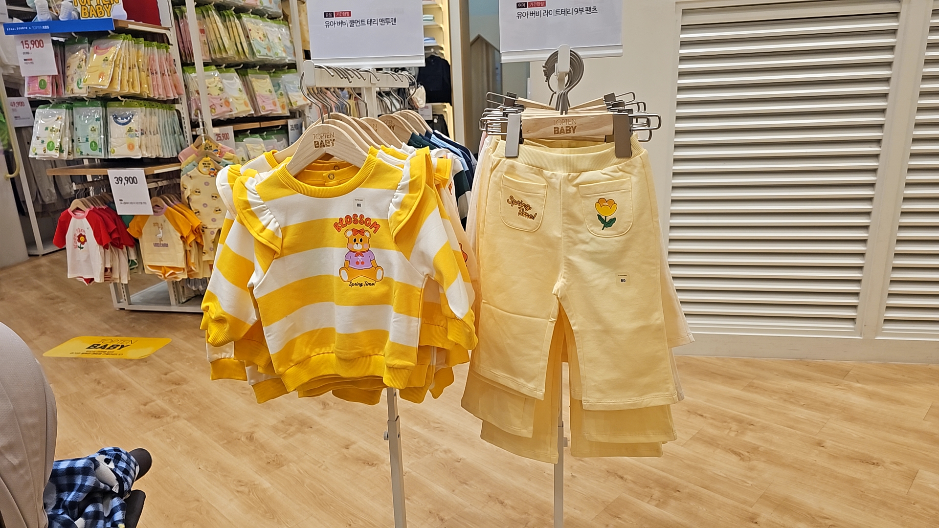 예전엔 몰랐는데 요즘에는 아가 영아 유아들 옷까지 비교적 저렴한 가격에 재질도 좋고, 세탁후에도 변형없이 잘 입을 수 있어서 구매를 하게 되는 것 같습니다. 날씨가 여름처럼 더워지는 만큼 짧은 티셔츠 원피스 반바지 등을 볼수 있었고,