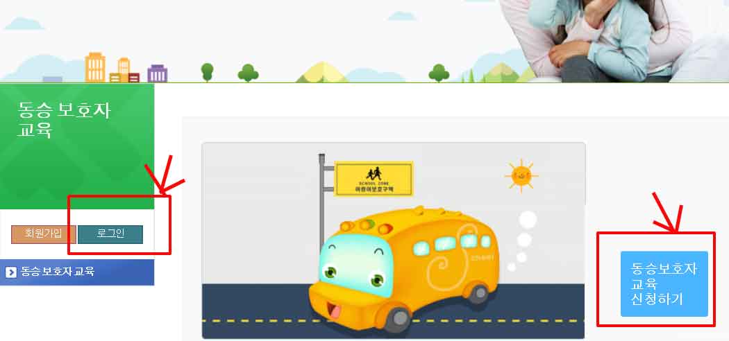 4. 회원가입을 하고 로그인 한 후 동승 보호자 교육 신청하기 를 눌러 줍니다.